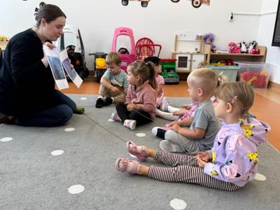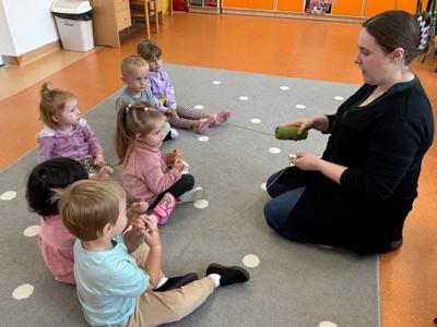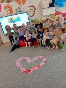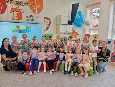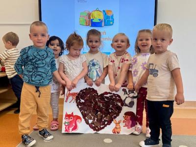 Na zajęciach na podstawie scenariusza „Metafora serduszka" wysłuchały opowiadania „Serduszko z listków" i nazwały emocje, które towarzyszyły Jeżykowi Roro i jego przyjaciołom z Leśnego Przedszkola.