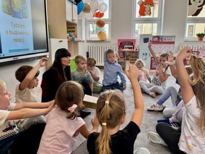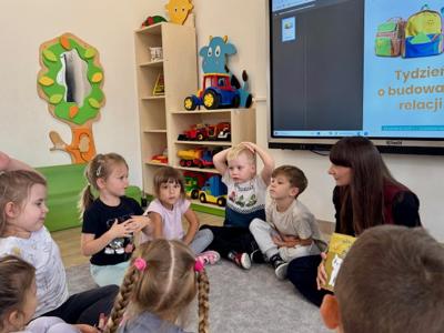 Tydzień Budowania Relacji był to wyjątkowy czas, w którym poprzez zabawę, rozmowy i wspólne działania przedszkolaki dowiedziały się, jak ważne są: przyjaźń, szacunek, odwaga, miłe słowa i gesty oraz niesienie pomocy innym. Przedszkolaki rozpoznawały i nazywały emocje i uczyły się prostych sposobów radzenia sobie z trudnymi emocjami.