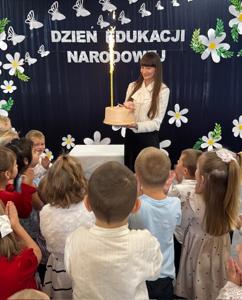 Dzień Edukacji Narodowej to szczególny dzień w naszym przedszkolu. Z tej okazji przedszkolaki zaprezentowały program artystyczny, złożyły swoim paniom życzenia i wręczyły upominki i kwiaty. Po części artystycznej Pani Dyrektor złożyła Nauczycielom i Pracownikom życzenia i wręczyła nagrody, dziękując za serce, które wkładają w swoją pracę.