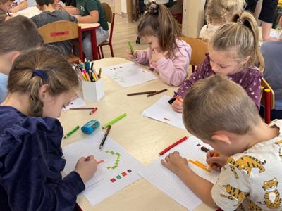 Przedszkolaki z grupy Bystrzaki wzięły udział w tegorocznym Europejskim Tygodniu Kodowania - CodeWeek 2025! CodeWeek to ogólnoeuropejska inicjatywa promująca naukę programowania i kompetencje cyfrowe. Bystrzaki kodowały poprzez zabawę: wykonały jesienne dyktanda graficzne na macie do kodowania, budowały wieże z kolorowych kubeczków oraz kolorowały obrazek zgodnie z kodem. Brawo przedszkolaki!