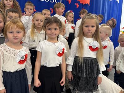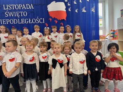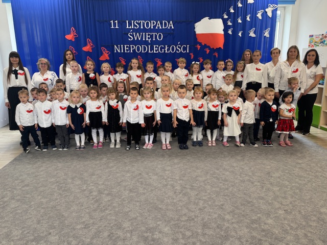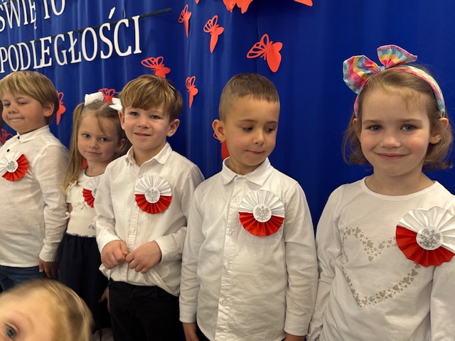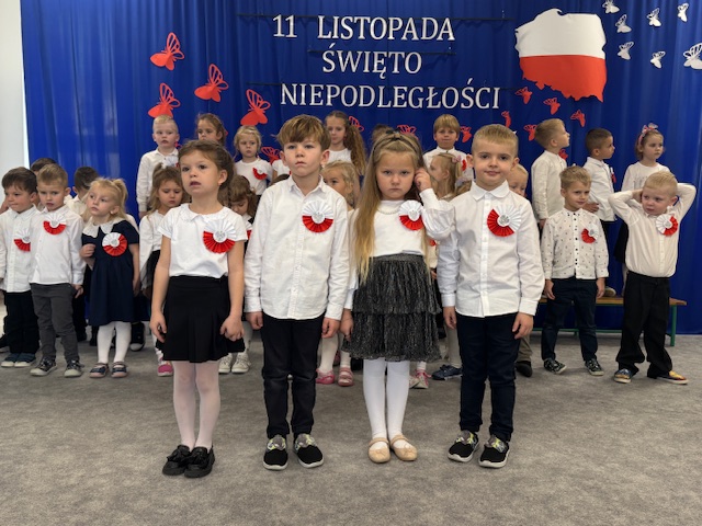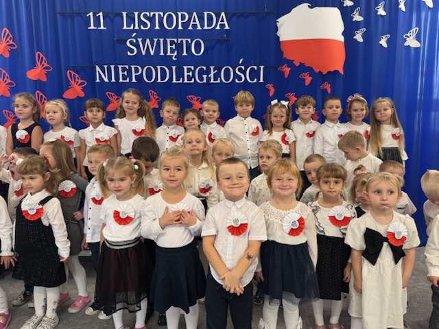 Przedszkolaki z dumą zaprezentowały program artystyczny przypominając, jak ważne są wolność, pamięć o historii i miłość do Ojczyzny. O godzinie 11.11 wszyscy odśpiewaliśmy Hymn Polski „Mazurka Dąbrowskiego” włączając się w akcję „Szkoła do hymnu”. To był dzień pełen radości i prawdziwej dumy z bycia Polakiem!