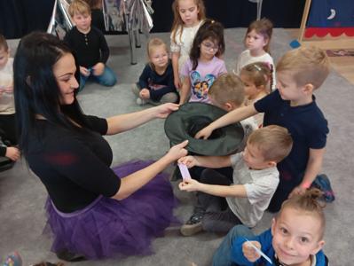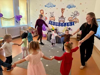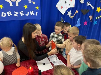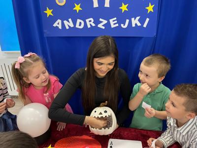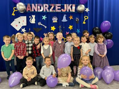 Tego dnia w przedszkolu panowała wyjątkowa i magiczna atmosfera! Dzieci z radością uczestniczyły w andrzejkowych zabawach inspirowanych dawnymi tradycjami. Było mnóstwo śmiechu, radości i niespodzianek. Nie zabrakło tańców, kolorowych strojów oraz wspólnej zabawy, która dostarczyła wszystkim wielu niezapomnianych wrażeń. Serdecznie dziękujemy rodzicom za przygotowanie poczęstunku - dzięki Wam ten dzień był jeszcze bardziej wyjątkowy!