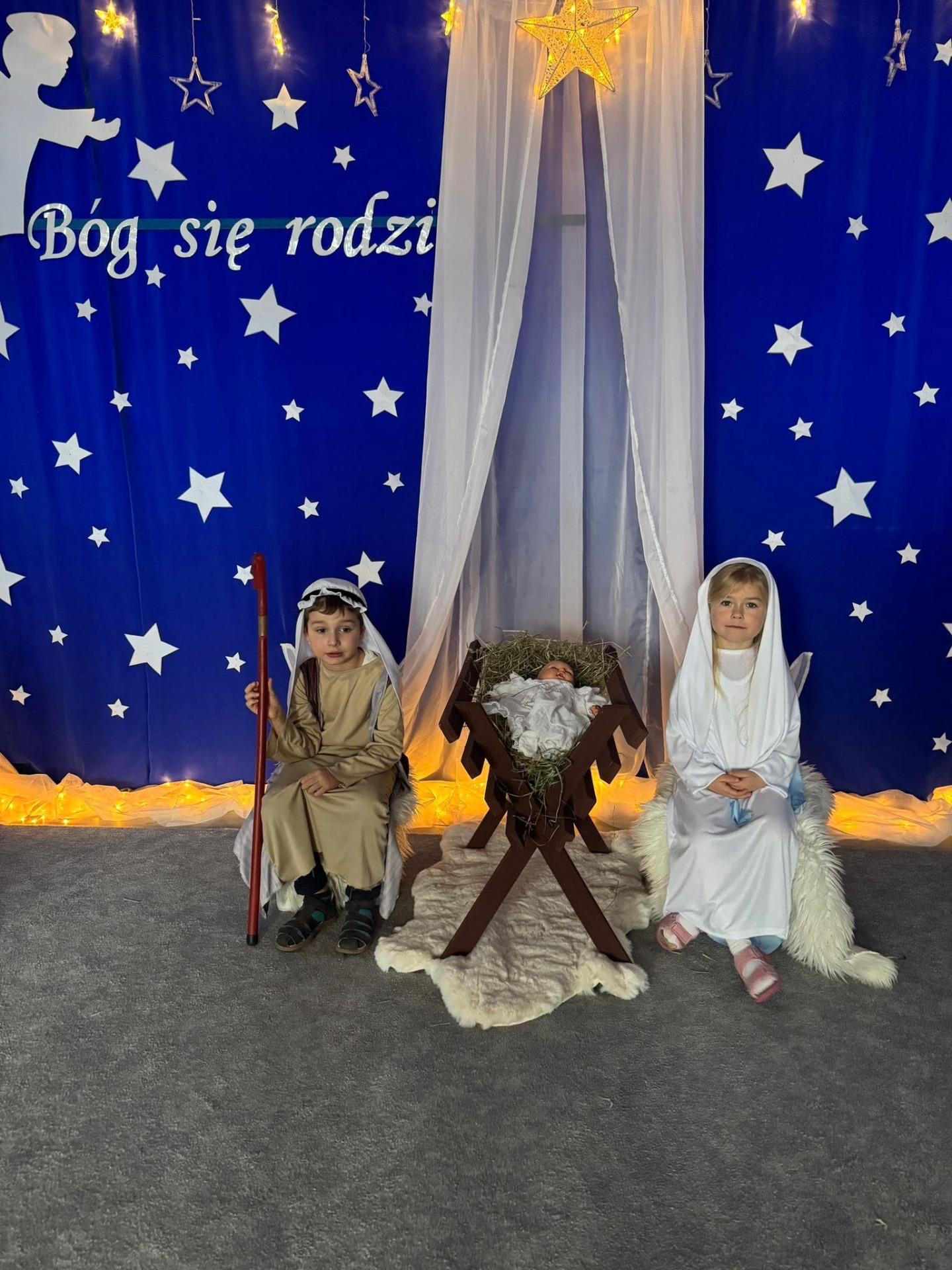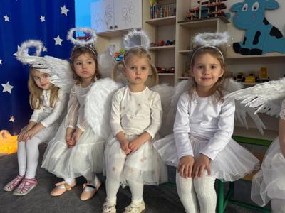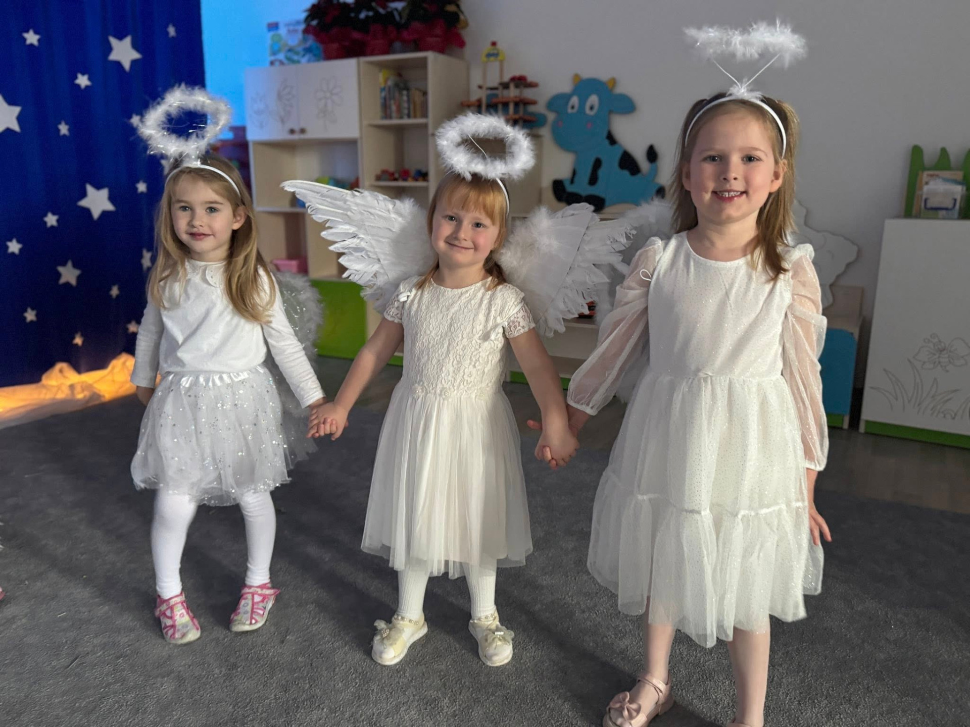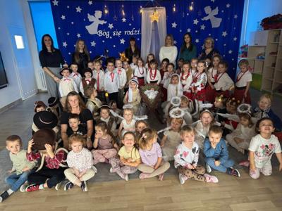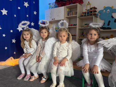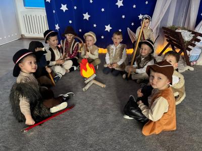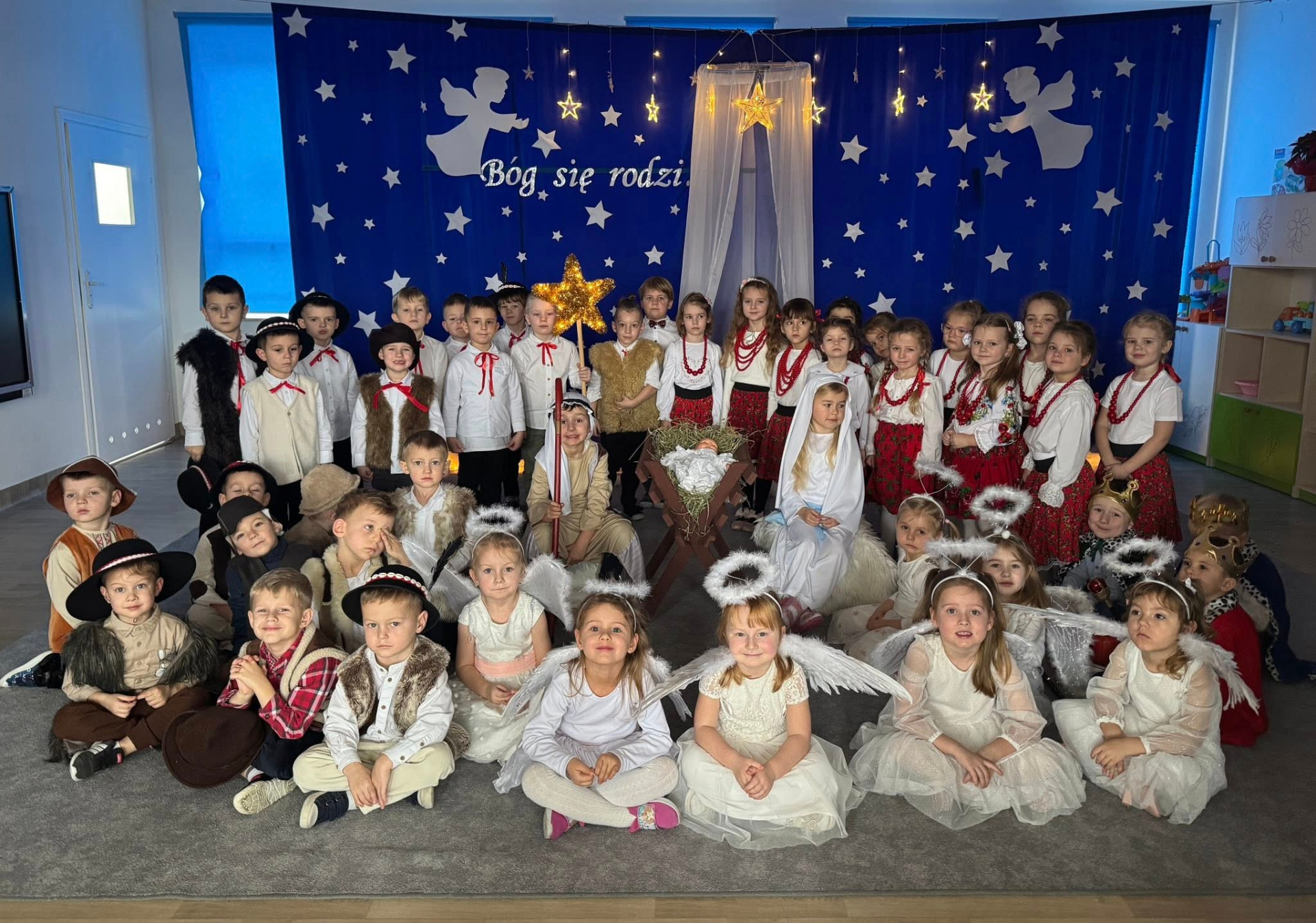 Przedszkolaki z grupy Sówki zaprezentowały całej społeczności przedszkolnej pełne wzruszeń, radości i świątecznego ciepła Jasełka. Dzieci w strojach Maryi, Świętego Józefa, pastuszków, królów i aniołów w przejmujący sposób opowiedziały historię Bożego Narodzenia. Podczas występu Sówki recytowały wiersze i tańczyły oraz pięknie śpiewały polskie kolędy i pastorałki. Na końcu złożyły wszystkim życzenia z okazji zbliżających się świąt Bożego Narodzenia.