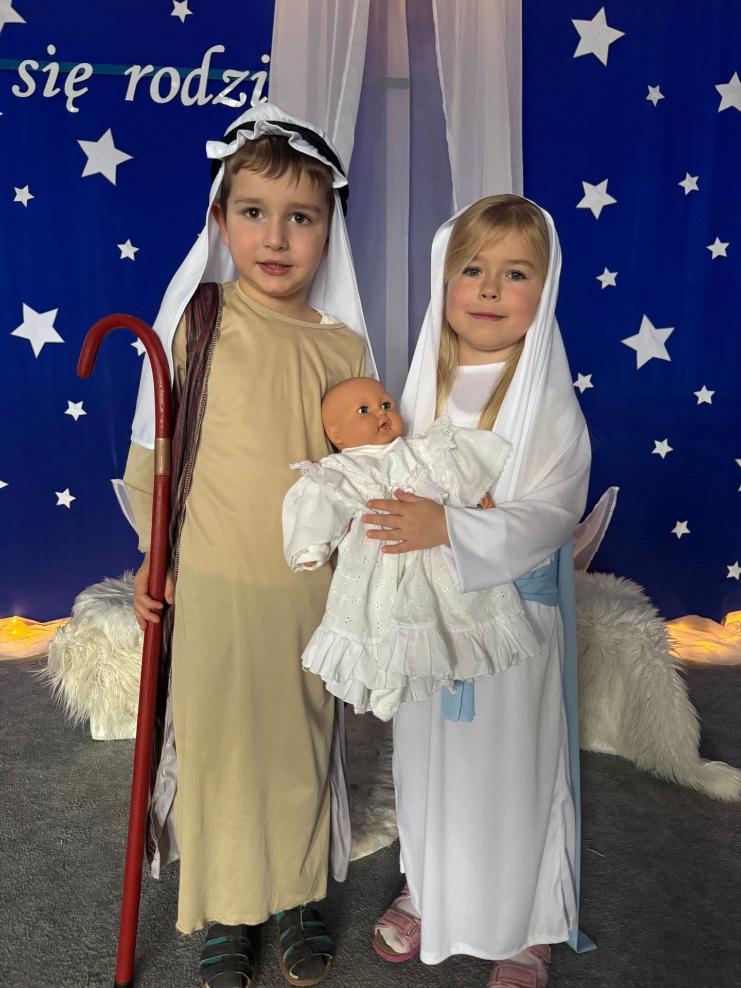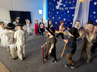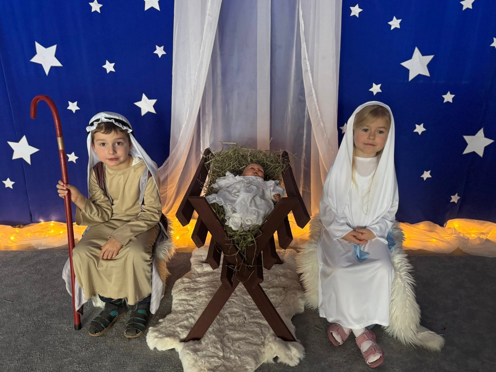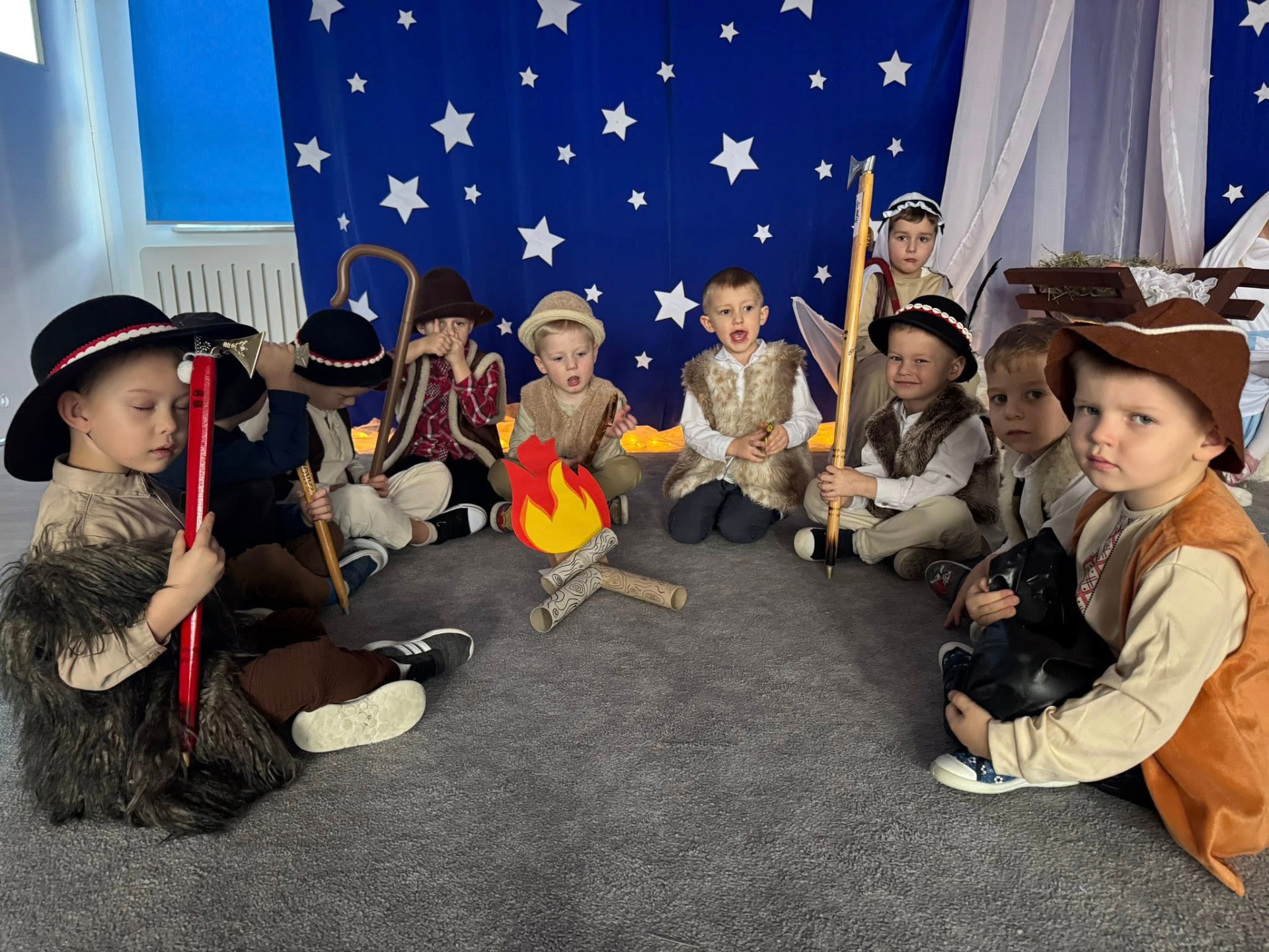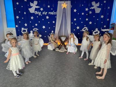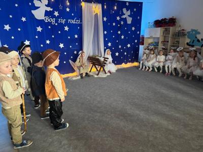 Przedszkolaki z grupy Sówki zaprezentowały całej społeczności przedszkolnej pełne wzruszeń, radości i świątecznego ciepła Jasełka. Dzieci w strojach Maryi, Świętego Józefa, pastuszków, królów i aniołów w przejmujący sposób opowiedziały historię Bożego Narodzenia. Podczas występu Sówki recytowały wiersze i tańczyły oraz pięknie śpiewały polskie kolędy i pastorałki. Na końcu złożyły wszystkim życzenia z okazji zbliżających się świąt Bożego Narodzenia.